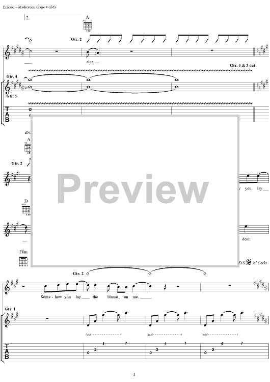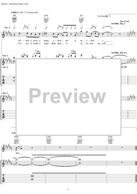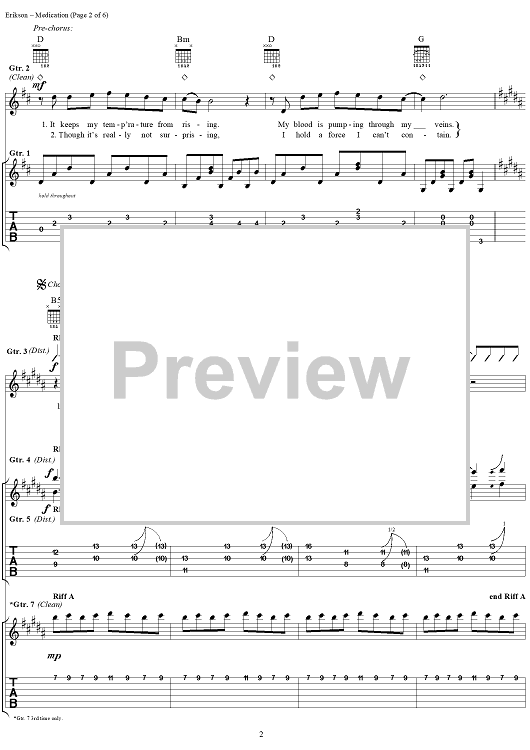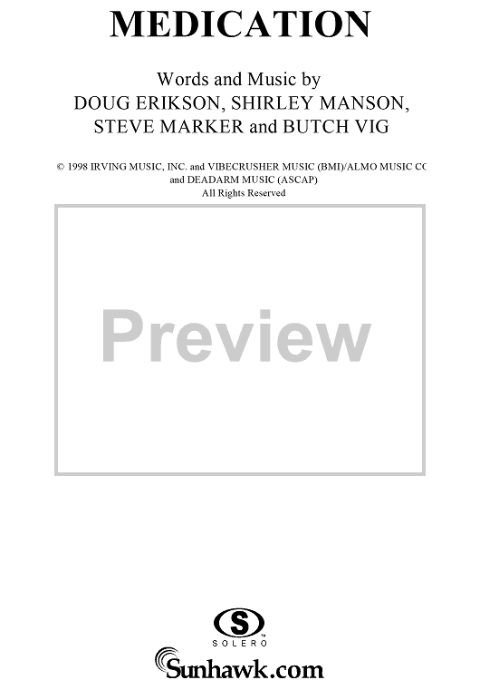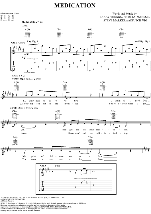 Digital Sheet Music for Medication by Garbage, Steve Marker, Butch Vig, Doug Erikson, Shirley Manson scored for Guitar Tab/Vocal; id:114055