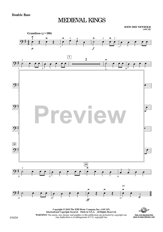 "Medieval Kings - Double Bass" Sheet Music by Soon Hee Newbold