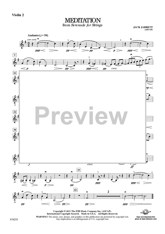 "Meditation (from Serenade for Strings) - Violin 2" Sheet Music by Jack Jarrett