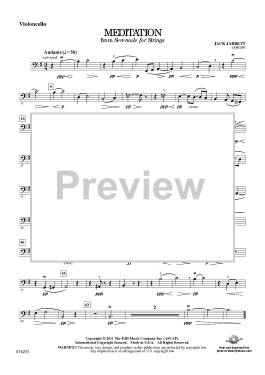 "Meditation (from Serenade for Strings) - Violoncello" Sheet Music by Jack Jarrett