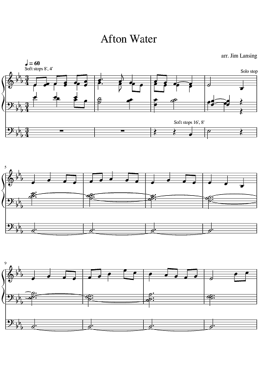 Digital Sheet Music for Meditation on Afton Water by Jim Lansing scored for Organ Solo; id:469484