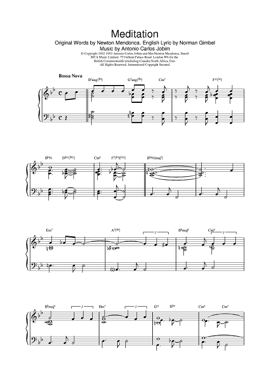 "Meditation" Sheet Music by Antonio Carlos Jobim