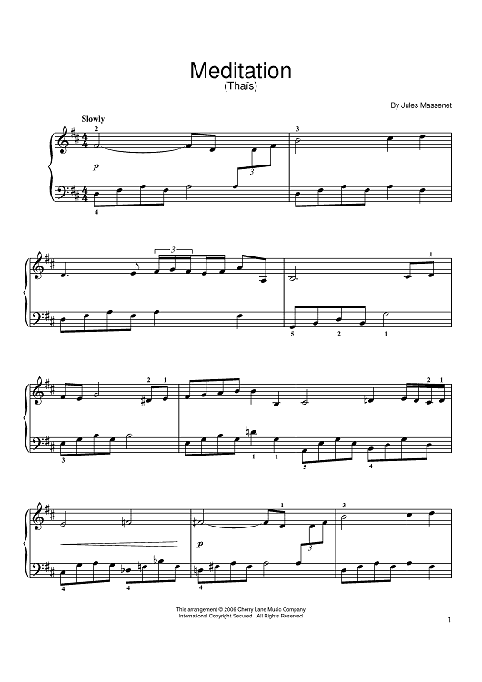 Digital Sheet Music for Meditation by Jules Massenet scored for Easy Piano; id:391274