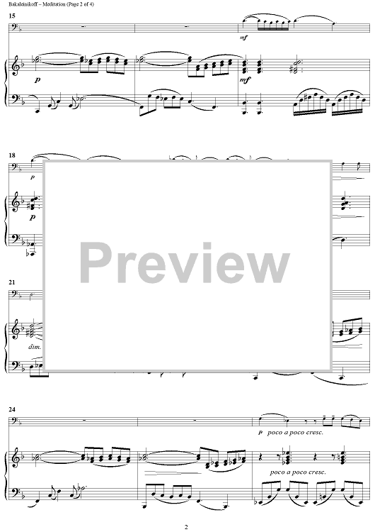 Digital Sheet Music for Meditation by Vladimir Bakaleinikoff scored for Trombone/Piano; id:438066