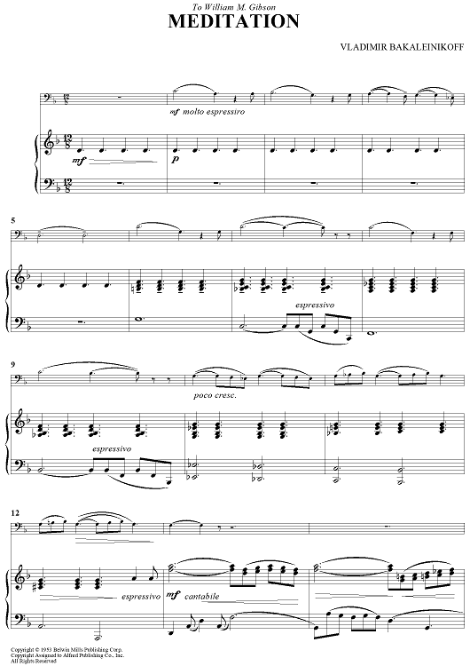 "Meditation" Sheet Music by Vladimir Bakaleinikoff