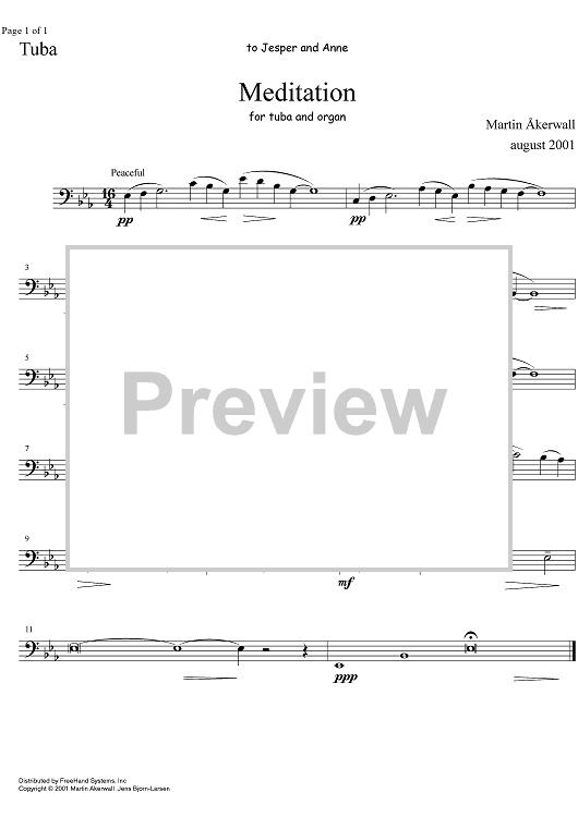 "Meditation - Tuba" Sheet Music by Martin Akerwall