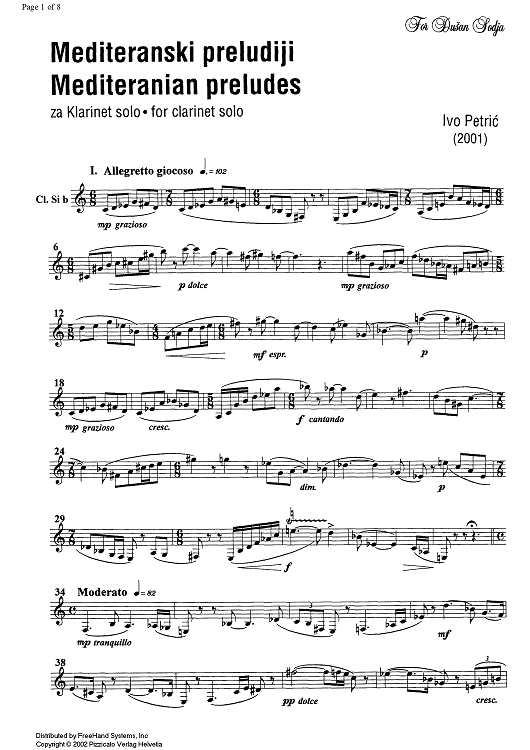 Digital Sheet Music for Mediteranian Preludes by , Ivo Petric scored for B-flat Clarinet; id:338529