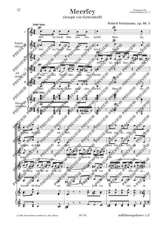 Digital Sheet Music for Meerfey by Robert Schumann scored for Female Voices (sssaa); Piano Ad Libitum; id:497341