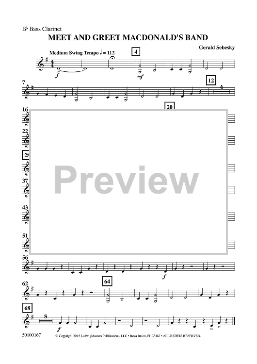Digital Sheet Music for Meet and Greet MacDonald’s Band - Bb Bass Clarinet by Gerald Sebesky scored for Concert Band; id:459572