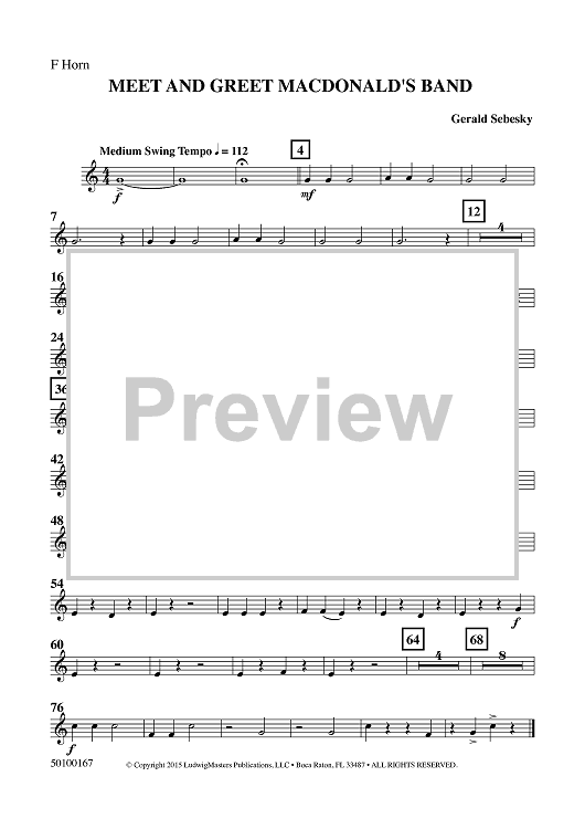 Digital Sheet Music for Meet and Greet MacDonald’s Band - Horn in F by Gerald Sebesky scored for Concert Band; id:459579