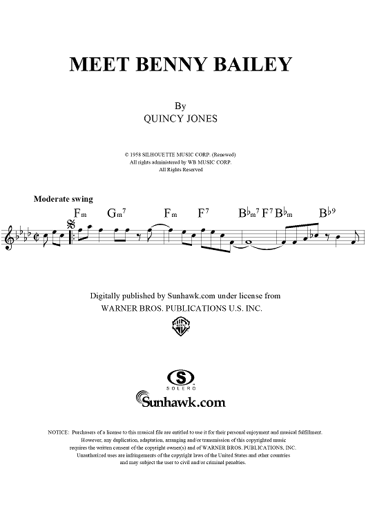 Digital Sheet Music for Meet Benny Bailey by Quincy Jones scored for Lead Sheet; id:265805