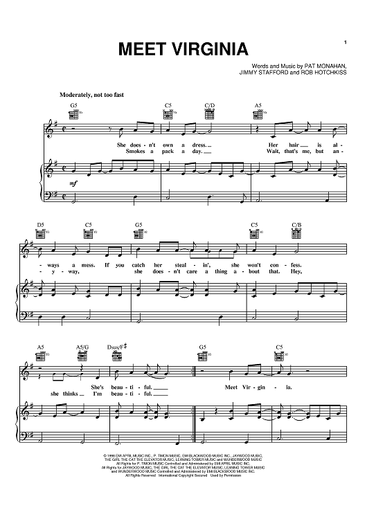 Digital Sheet Music for Meet Virginia by Pat Monahan, Jimmy Stafford, Rob Hotchkiss, Train scored for Piano/Vocal/Chords; id:368677