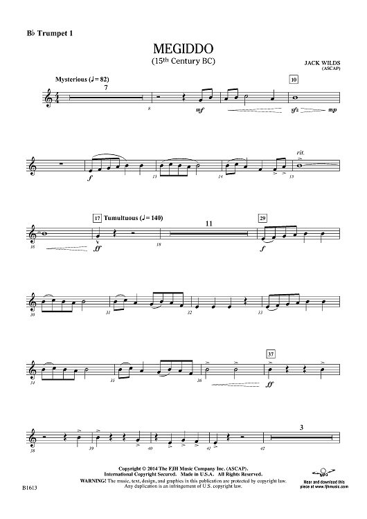 Digital Sheet Music for Megiddo (15th Century BC) - Bb Trumpet 1 by Jack Wilds scored for Concert Band; id:447919