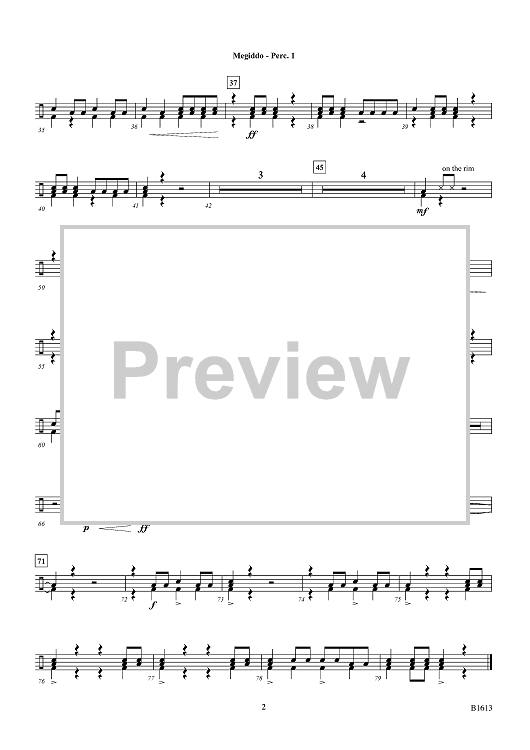 Digital Sheet Music for Megiddo (15th Century BC) - Percussion 1 by Jack Wilds scored for Concert Band; id:447928