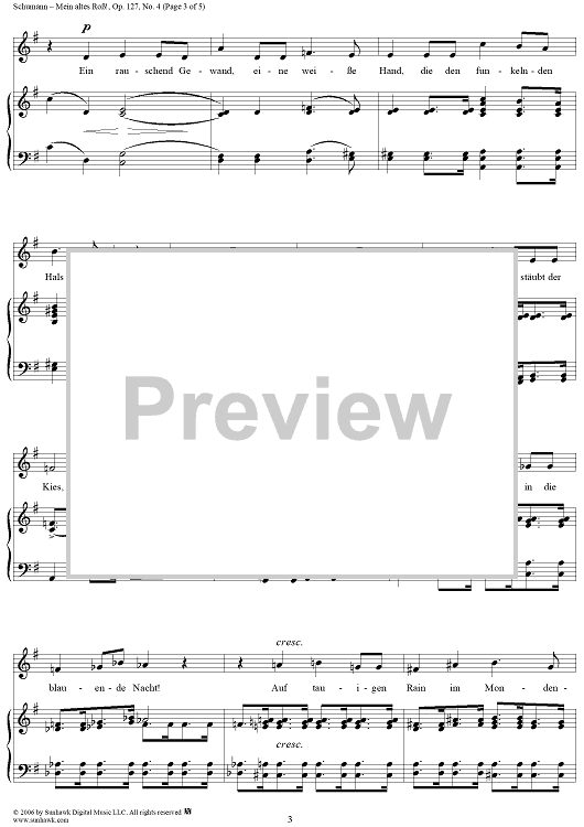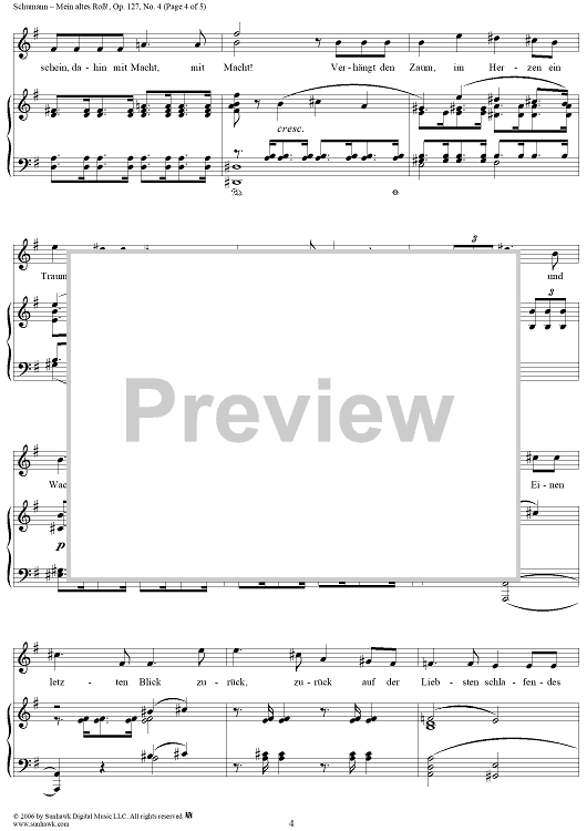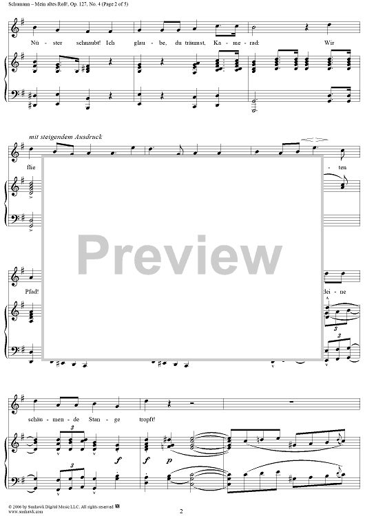 Digital Sheet Music for Mein altes Roß!, Op. 127, No. 4 by Robert Schumann, Strachwitz scored for Voice/Piano; id:316346