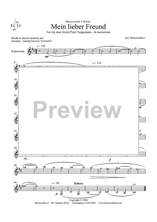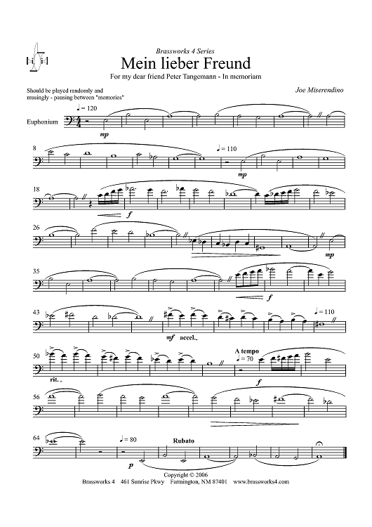 Digital Sheet Music for Mein lieber Freund by Joe Miserendino scored for Euphonium Solo; id:358209