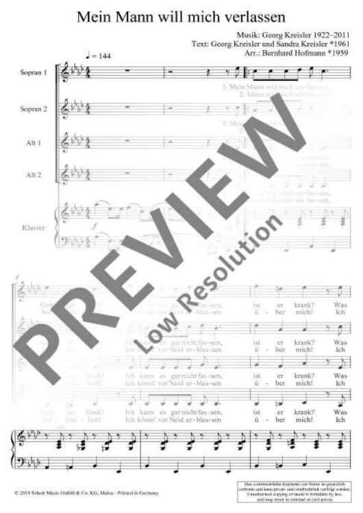 "Mein Mann will mich verlassen - Choral Score" Sheet Music by Georg Kreisler