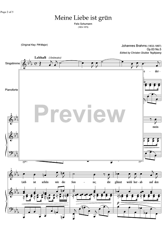 "Meine Liebe ist grün Op.63 No. 5" Sheet Music by Johannes Brahms