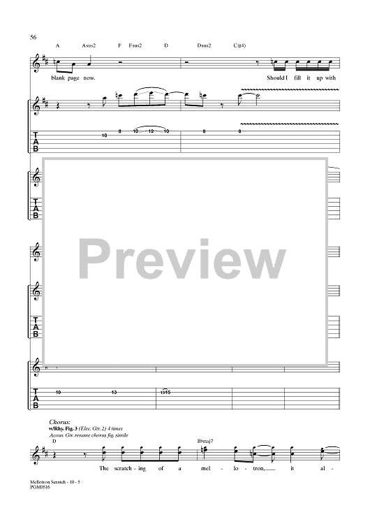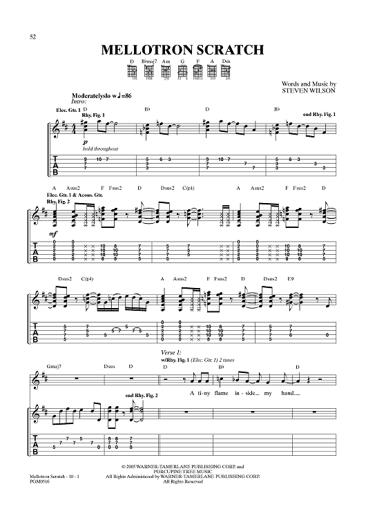 Digital Sheet Music for Mellotron Scratch by Porcupine Tree, Steven Wilson scored for Guitar Tab/Vocal; id:360026