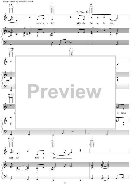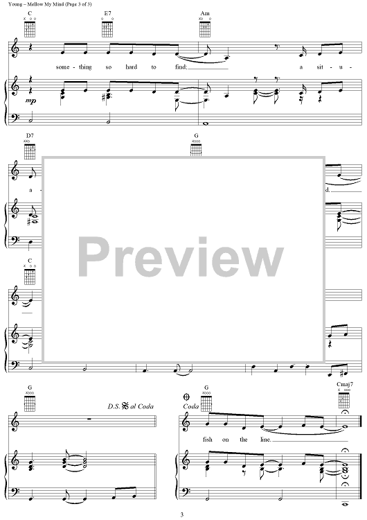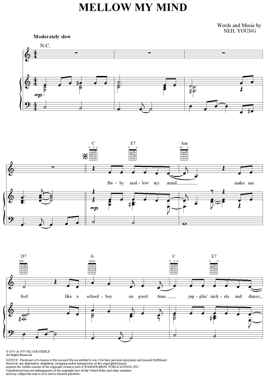 Digital Sheet Music for Mellow My Mind by Neil Young scored for Piano/Vocal/Chords; id:124297