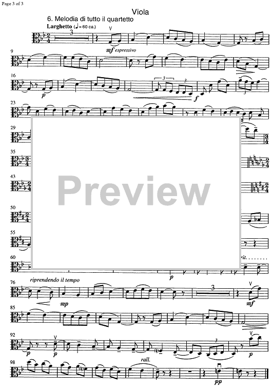 Digital Sheet Music for Melodia verde Op.38 bis - Viola by Claudio Cavadini scored for String Quartet; id:350738