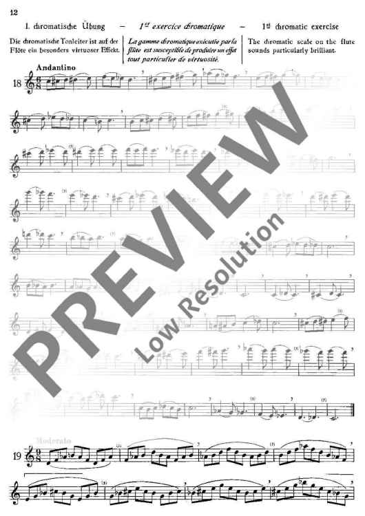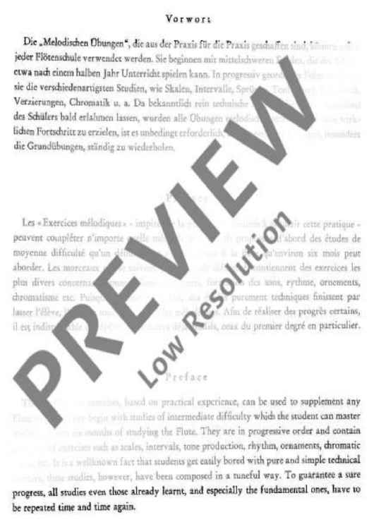Die "Melodischen Übungen", die aus der Praxis für die Praxis geschaffen sind, können neben jeder Flötenschule verwendet werden. Sie beginnen mit mittelschweren Etüden, die der Schüler etwa nach einem halben Jahr Unterricht spielen kann. In progressiv geordneter Folge enthalten sie die verschiedenartigsten Studien, wie Skalen, Intervalle, Sprünge, Tonbildung, Rhythmik, Verzierungen, Chromatik u. a. Da bekanntlich rein technische Studien die Aufmerksamkeit des Schülers bald erlahmen lassen, wurden alle Übungen melodisch gestaltet. Um einen wirklichen Fortschritt zu erzielen, ist es unbedingt erforderlich, bereits gespielte Übungen, besonders die Grundübungen, ständig zu wiederholen.