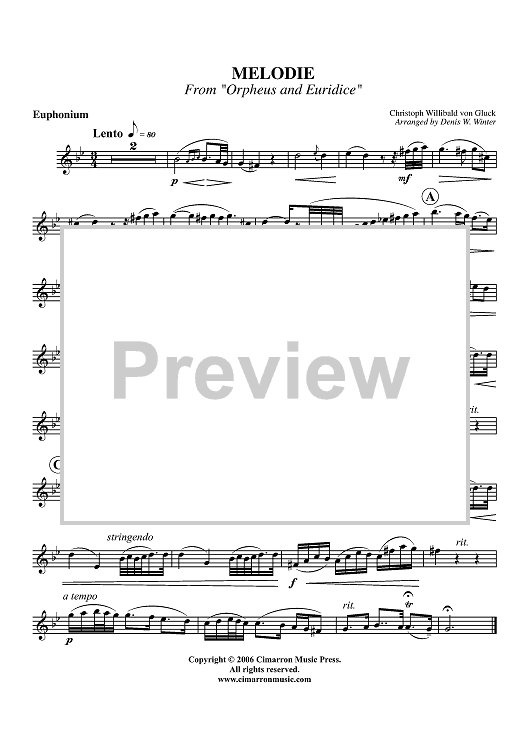 Digital Sheet Music for Melodie from "Orpheus and Euridice" - Euphonium BC/TC by Denis Winter, Christoph Willibald Glück scored for Euphonium/Piano; id:357286