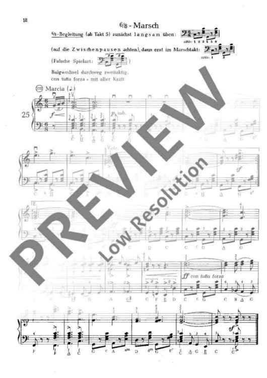 Unentbehrlich für jeden strebsamen Akkordeonisten: Klangvolle, ansprechende und dankbare Spezialübungen. Wertvolle Beiträge zur Förderung des melodisch-technischen Spiels, mit genauesten Fingersatz- und Registerangaben im Diskant und Bass. Als Beiheft zu jeder Akkordeonschule passend, als gesondertes Studienwerk verwendbar und für den Selbstunterricht geeignet.