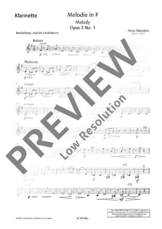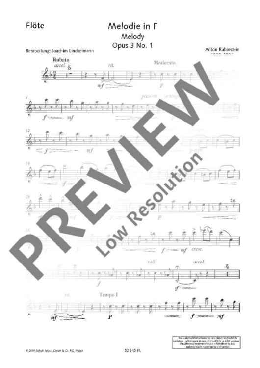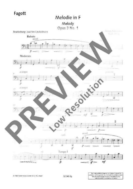 "Melody in F major - Score and Parts" Sheet Music by Grigorjewitsch Rubinstejn