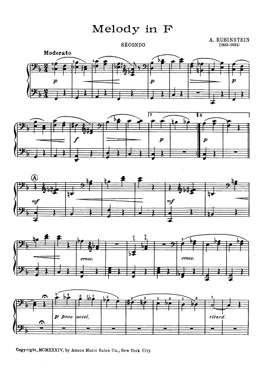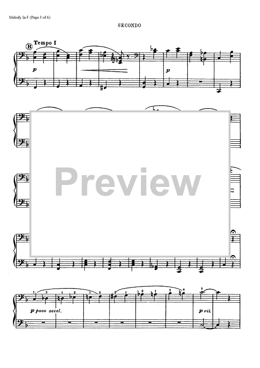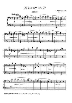 Digital Sheet Music for Melody in F by Anton Rubinstein scored for 1 Piano, 4 Hands; id:460866