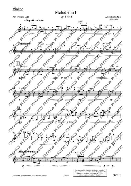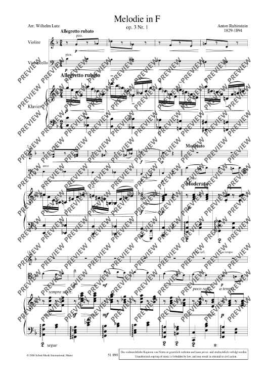 "Melody in F - Score and Parts" Sheet Music by Grigorjewitsch Rubinstejn