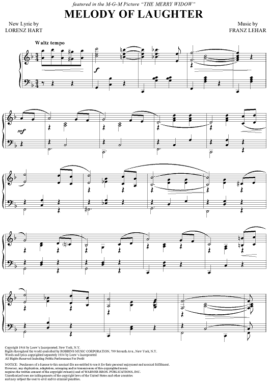 Digital Sheet Music for Melody of Laughter by Lorenz Hart, Franz Lehár scored for Piano/Vocal; id:356032