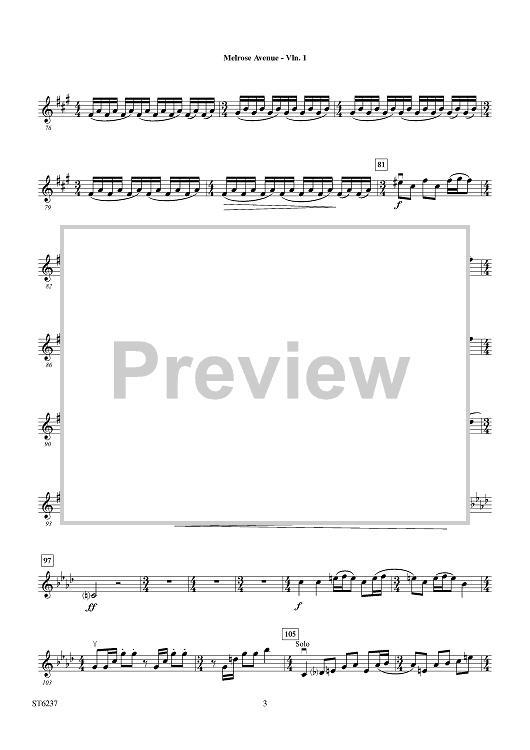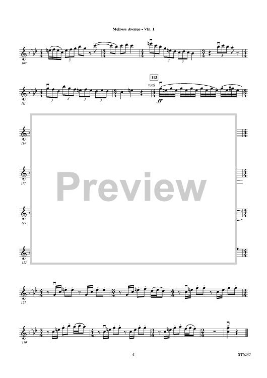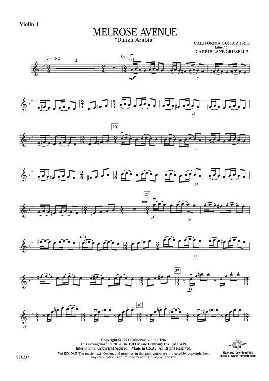 Digital Sheet Music for Melrose Avenue “Danza Arabia” - Violin 1 by Carrie Lane Gruselle, California Guitar Trio scored for String Orchestra; id:431918