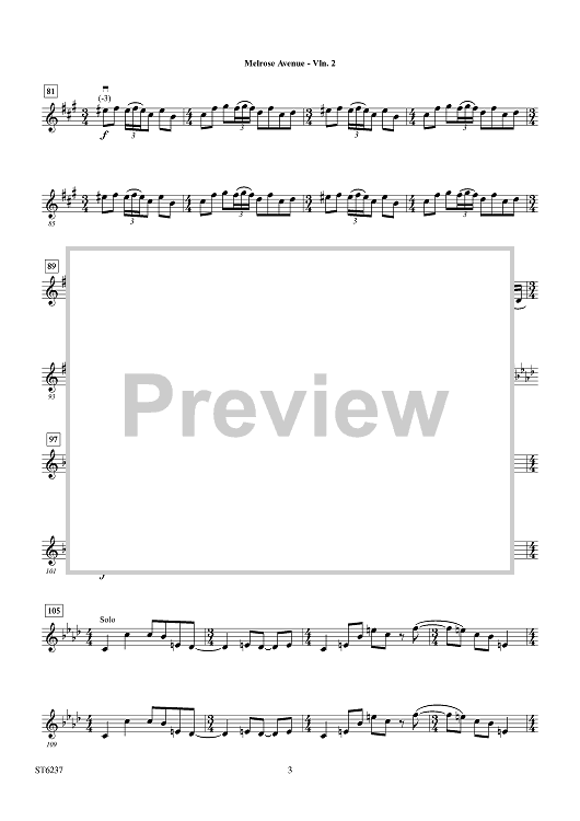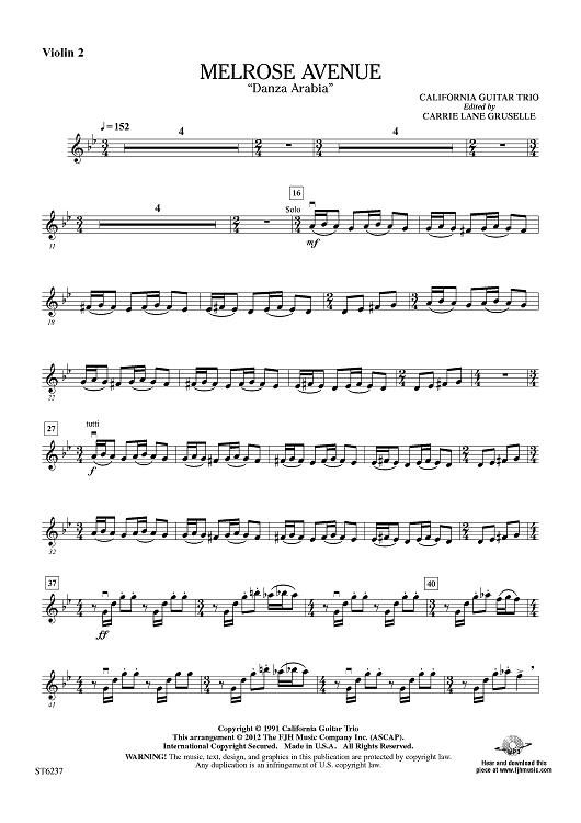 Digital Sheet Music for Melrose Avenue “Danza Arabia” - Violin 2 by Carrie Lane Gruselle, California Guitar Trio scored for String Orchestra; id:431919