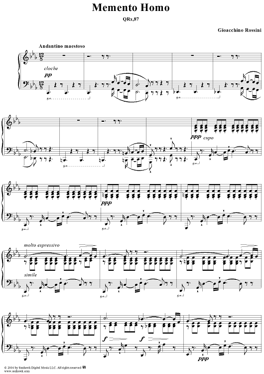 Digital Sheet Music for Memento Homo by Gioachino Rossini scored for Piano Solo; id:296636