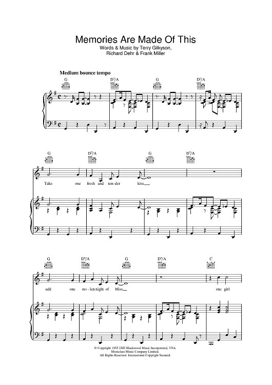 "Memories Are Made Of This" Sheet Music by Terry Gilkyson