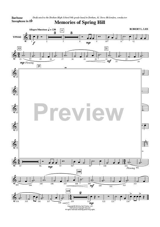 Digital Sheet Music for Memories of Spring Hill - Baritone Sax by Robert L. Lee scored for Concert Band; id:453721