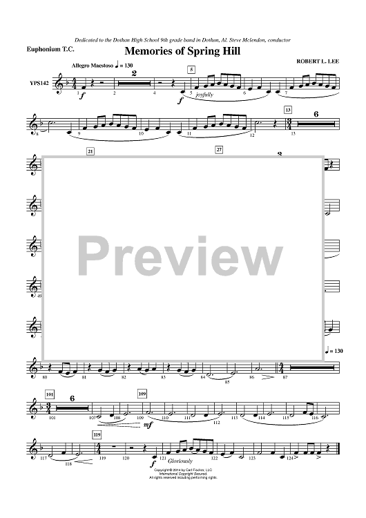 Digital Sheet Music for Memories of Spring Hill - Euphonium TC in Bb by Robert L. Lee scored for Concert Band; id:453727