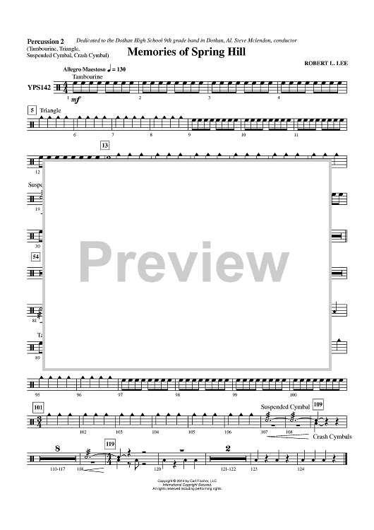 Digital Sheet Music for Memories of Spring Hill - Percussion 2 by Robert L. Lee scored for Concert Band; id:453731