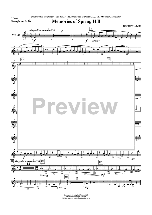 Digital Sheet Music for Memories of Spring Hill - Tenor Sax by Robert L. Lee scored for Concert Band; id:453720