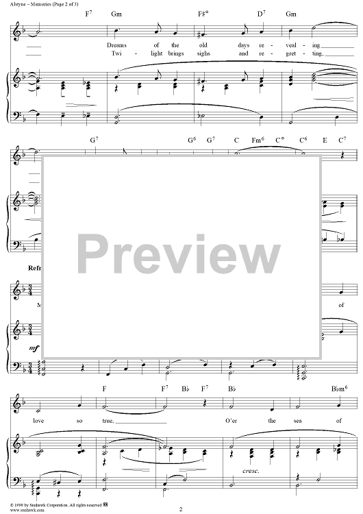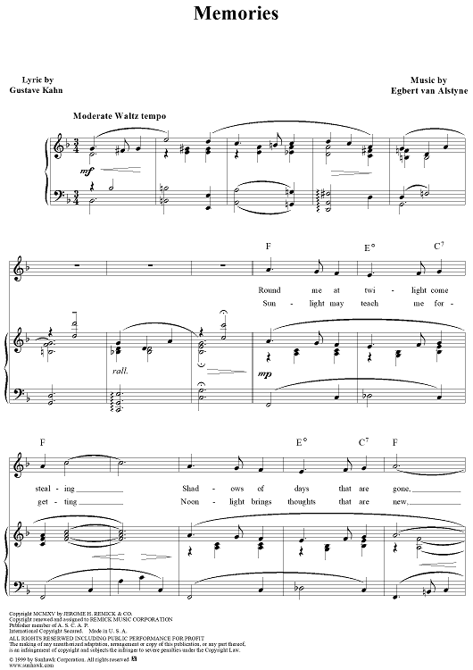 Digital Sheet Music for Memories by Egbert Van Alstyne scored for Piano/Vocal/Chords; id:254441