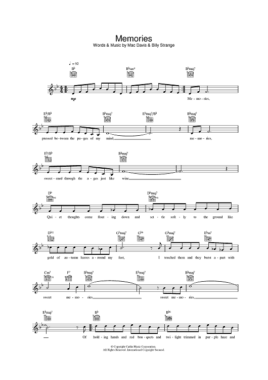 Digital Sheet Music for Memories by Elvis Presley, Mac Davis, Billy Strange scored for Lead Sheet; id:385369