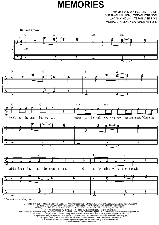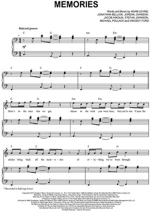 Digital Sheet Music for Memories by Adam Levine, Maroon 5, Vincent Ford, Jacob Hindlin, Stefan Johnson, Jon Bellion, Michael Pollack scored for Piano/Vocal/Chords; id:467823