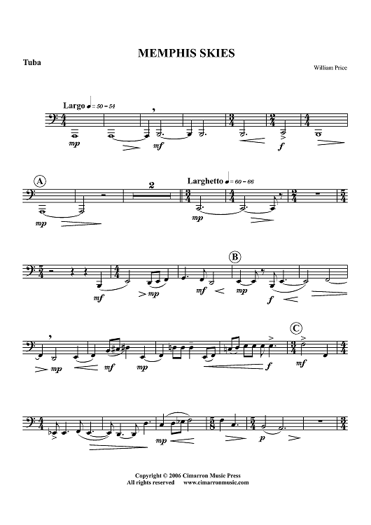 "Memphis Skies - Tuba" Sheet Music by William Price