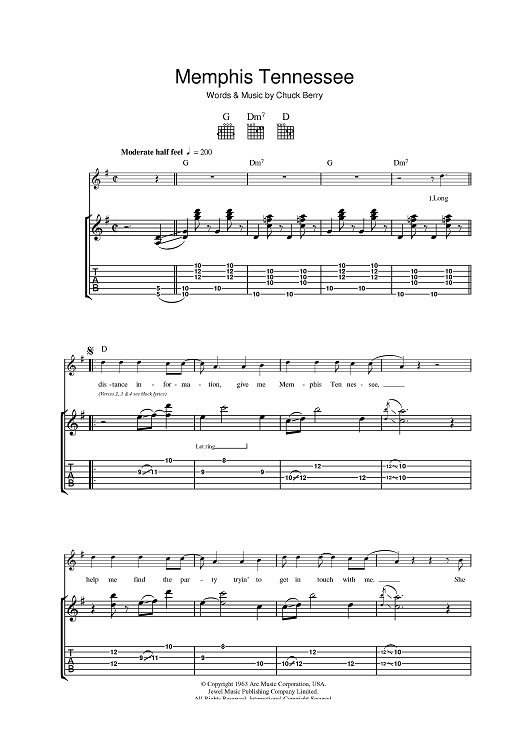"Memphis Tennessee" Sheet Music by Chuck Berry