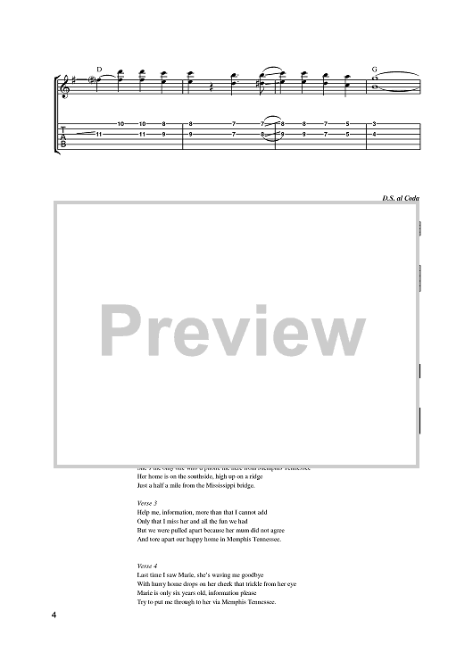 Digital Sheet Music for Memphis Tennessee by Chuck Berry scored for Guitar Tab; id:393441