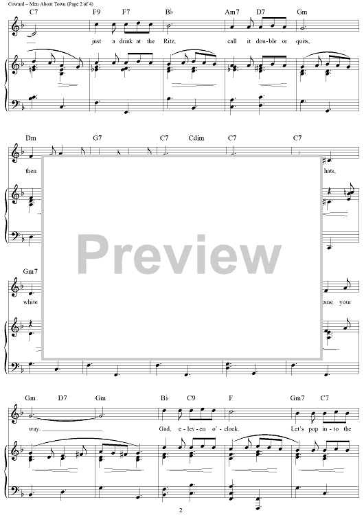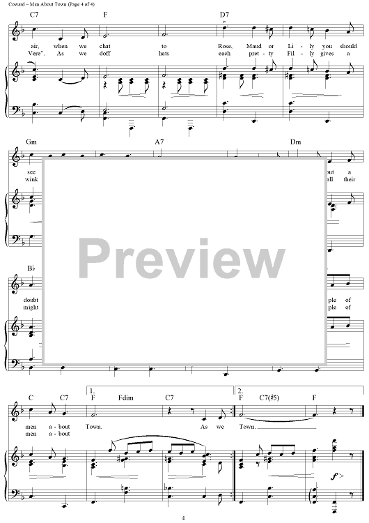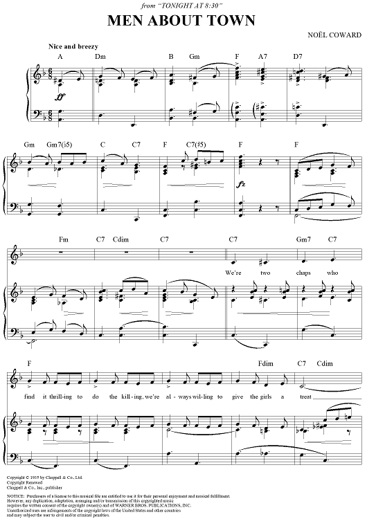 Digital Sheet Music for Men About Town by Noel Coward scored for Piano/Vocal/Chords; id:356891