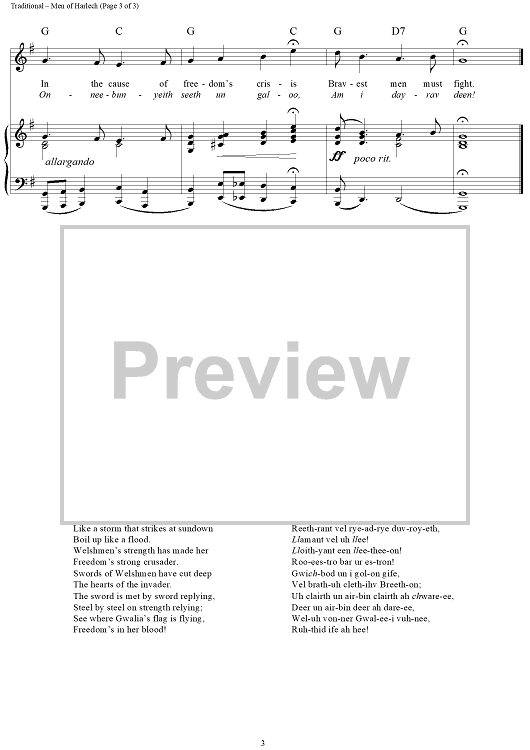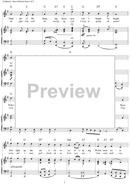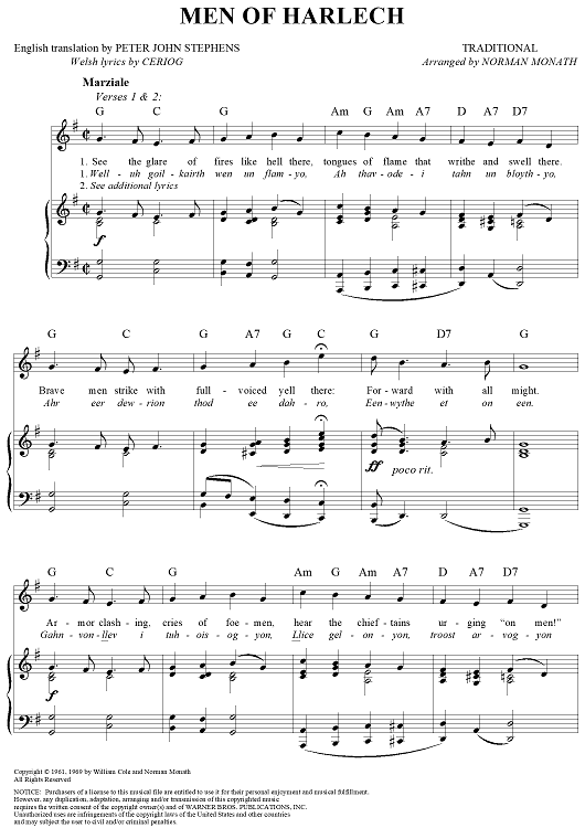 Digital Sheet Music for Men of Harlech by John Ceiriog Hughes, Norman Monath, Traditional scored for Piano/Vocal/Chords; id:261432