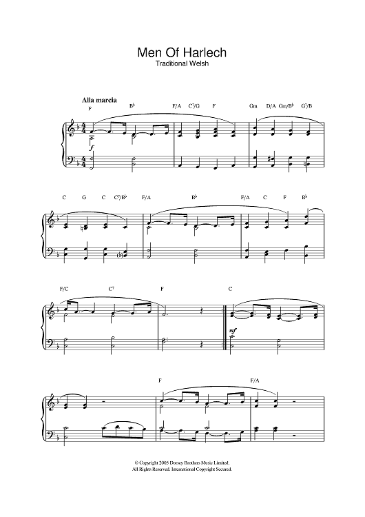 Digital Sheet Music for Men Of Harlech by scored for Piano; id:385448