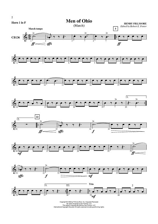 "Men of Ohio - Horn 1 in F" Sheet Music by Henry Fillmore